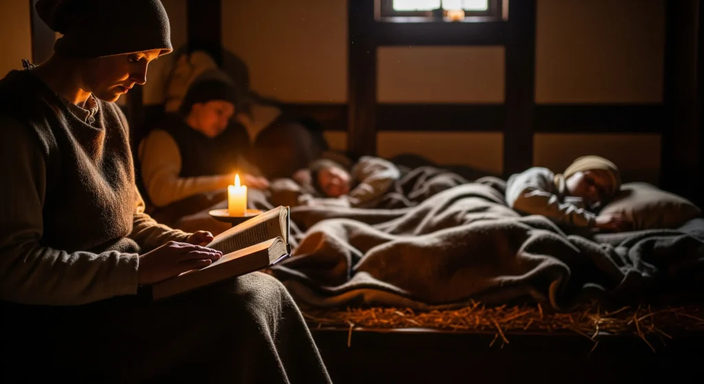 Ancora nel XX secolo nell’Europa centrale non sempre i bambini avevano ciascuno un letto proprio; mancavano lo spazio, i letti, le coperte e il riscaldamento. Spesso si dormiva in più di due persone per letto: il calore del corpo di un compagno di letto era indispensabile anche perché in genere si dormiva nudi, senza pigiami o camicie da notte. Anche nelle locande si stava a letto in almeno due persone (come oggi accade in alcuni alberghi francesi), spesso in tre, quattro o cinque, quando non in dieci; a Bruxelles su una tela di Dúrer del 1520 appare un letto per cinquanta persone, forse per clienti ubriachi. Dormire in molti in un letto non era considerato disdicevole (l’artista del capitello di Autun ritrae Re Magi mentre dormono, insieme, sotto un’unica coperta).